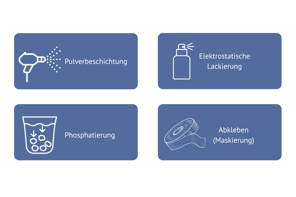 Die Maskierung ist ein unverzichtbarer Schritt in der Pulverbeschichtung zur gezielten Abdeckung von Flächen, die nicht beschichtet werden sollen. Mit hitzebeständigen Klebebändern, Kappen oder Stopfen lassen sich selbst komplexe Geometrien zuverlässig schützen.